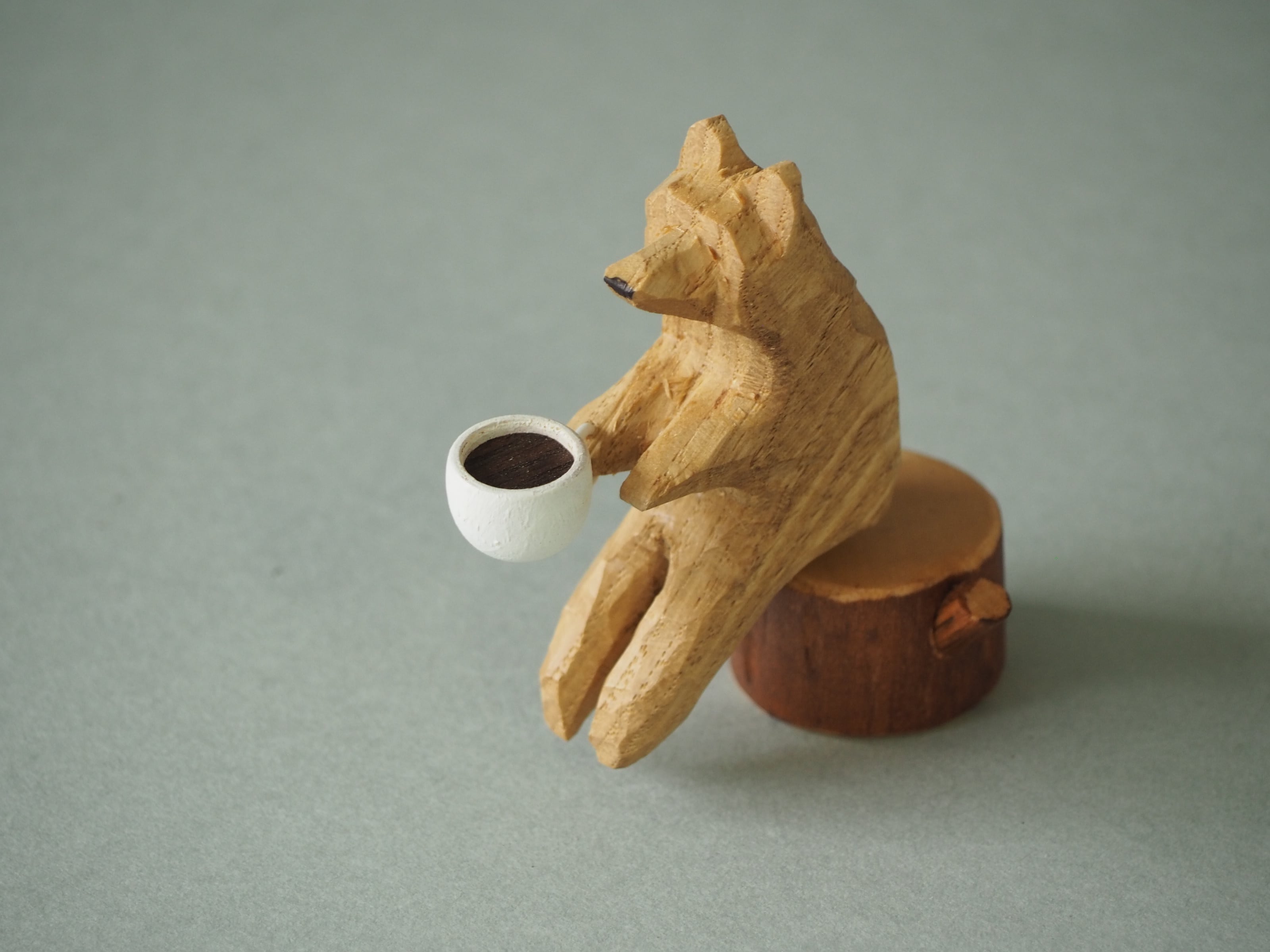 こちらはコーヒーと手に持ったクマのオブジェ。切り株に座るクマが何とも可愛い。クマと切株は磁石で付くようになっています。