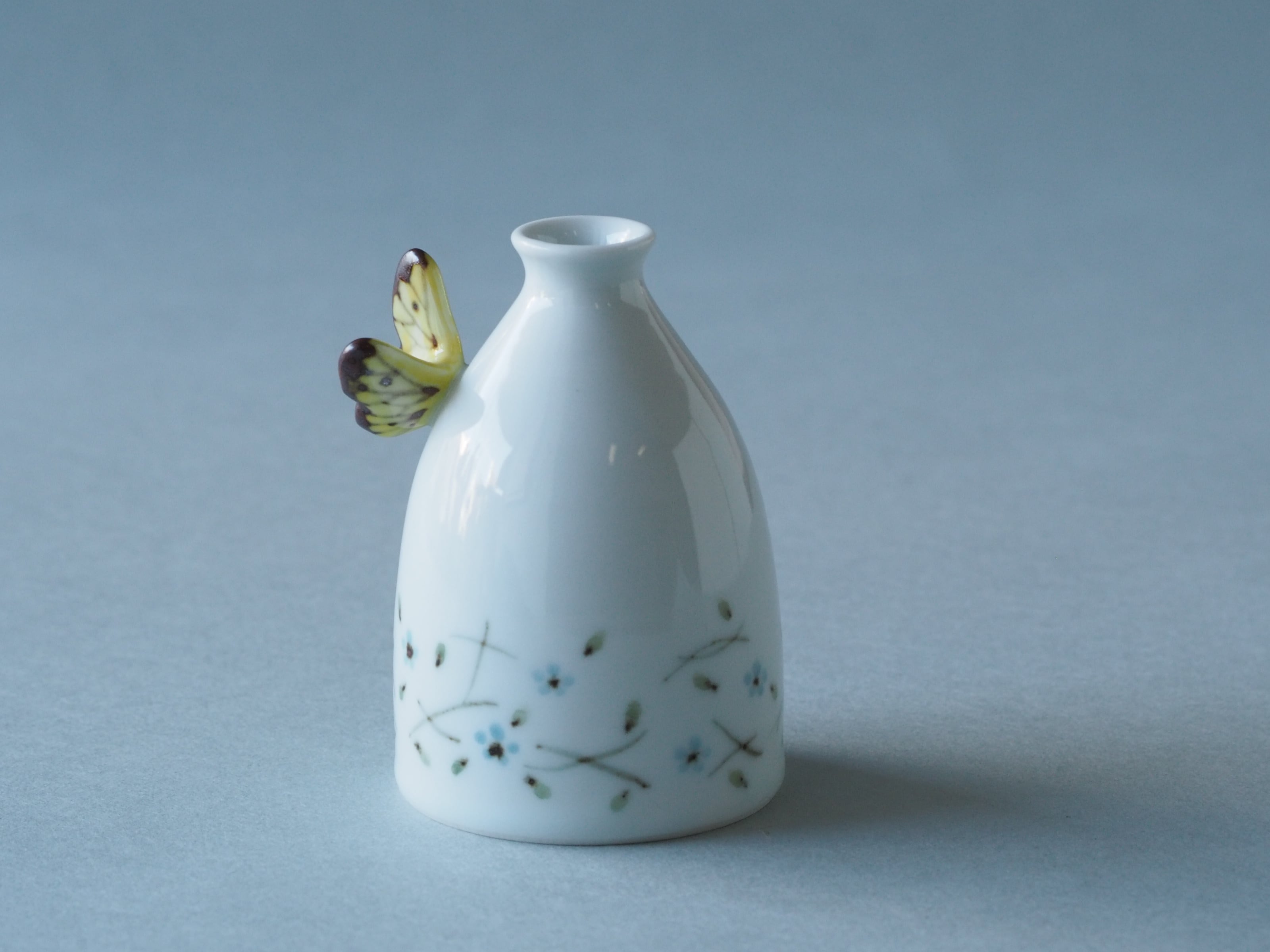 ちょこっととまっている蝶が可愛らしい一輪挿し。